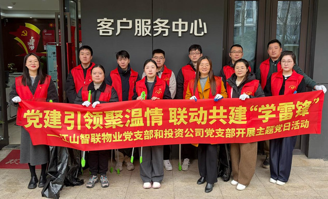 3月5日,江山智联物业党支部联合投资公司党支部,以“党建引领聚温情 联动共建学雷锋”为主题,组织双方党员志愿者在青奥村、丹枫园、海棠园等住宅项目同步开展学雷锋便民服务活动。青奥村项目聚焦生活细节,协助清洗地垫、纱窗,解决业主日常难题;丹枫园项目筑牢安全防线,开展绿化带垃圾清捡及防诈骗宣传,提升社区安全系数;海棠园项目强化健康守护,提供血压测量及AED急救设备教学,增强居民应急能力。未来,江山智联物业党支部将进一步深化“党建+服务”模式,通过分类施策,推动志愿服务常态化、专业化,让雷锋精神在社区治理中绽放新光芒。